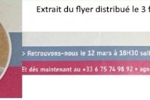 Notre réunion publique est prévue le MARDI 10 MARS à 18h30, salle Frédéric Mistral.