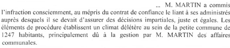 C’est une nouvelle rupture du contrat de confiance liant le maire à ses administrés … M. MARTIN a utilisé le budget communal pour payer ses factures d’avocats et commis consciemment un nouveau délit pénal, qualifié de détournement de fonds publics.