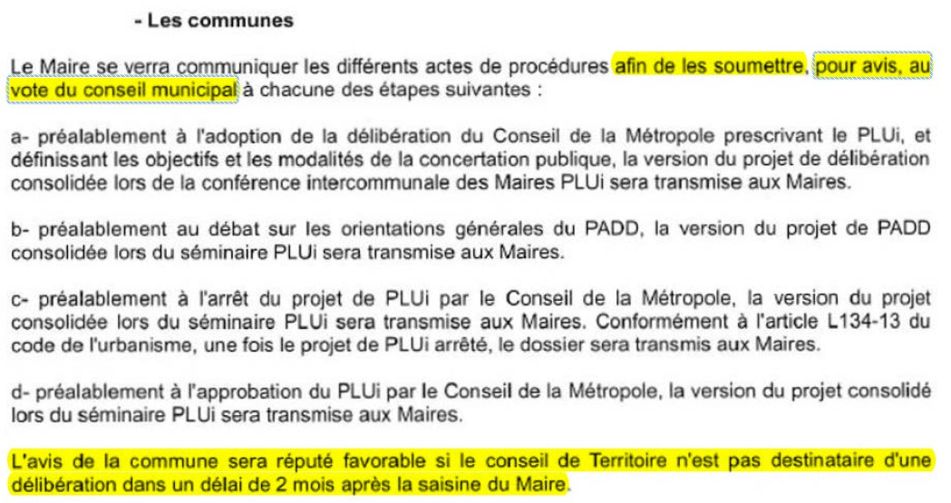 Durant toute la procédure d’élaboration du PLUi, la majorité municipale de M. MARTIN a tenu à l’écart le conseil municipal (en fait l’opposition) contrairement aux règles fixées par la Métropole (pour lire le texte intégral : délibération en date du 15 mai 2018):