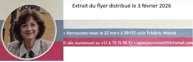 Plus on se rapproche des élections, plus les membres de l’ancienne majorité deviennent fébriles et comme on dit ici dans le sud, ils perdent la tramontane ! Après un tract ridicule de Mr Jeanne, tentant de justifier ses manipulations, voici que Mme Peyronnet enfreint allègrement des dispositions prises en conseil municipal ! Heureusement pour nous, ces faits illustrent très clairement le comportement de ces personnes qui aspirent à diriger notre commune : Manipulations, entre-soi, mensonges, egos démesurés, dissimulations et copinages. Au moins, grâce leur bêtise et leur arrogance, nous aurons été prévenus ! J’en profite pour remercier Patrick Markarian, qui depuis des années n’a de cesse de nous avertir sur les irrégularités et les manipulations à répétition de Martin et ses suppôts !