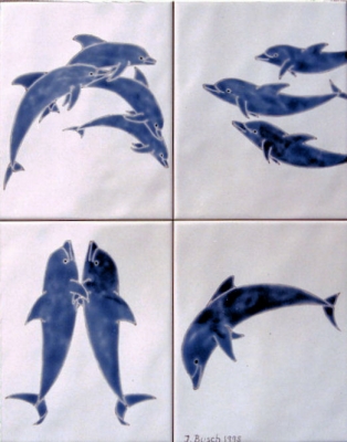 - ses oeuvres sur carreaux émaillés (représentations animalières, symboles sud-américains, masques africains, armoiries de Saint-Marc …)
